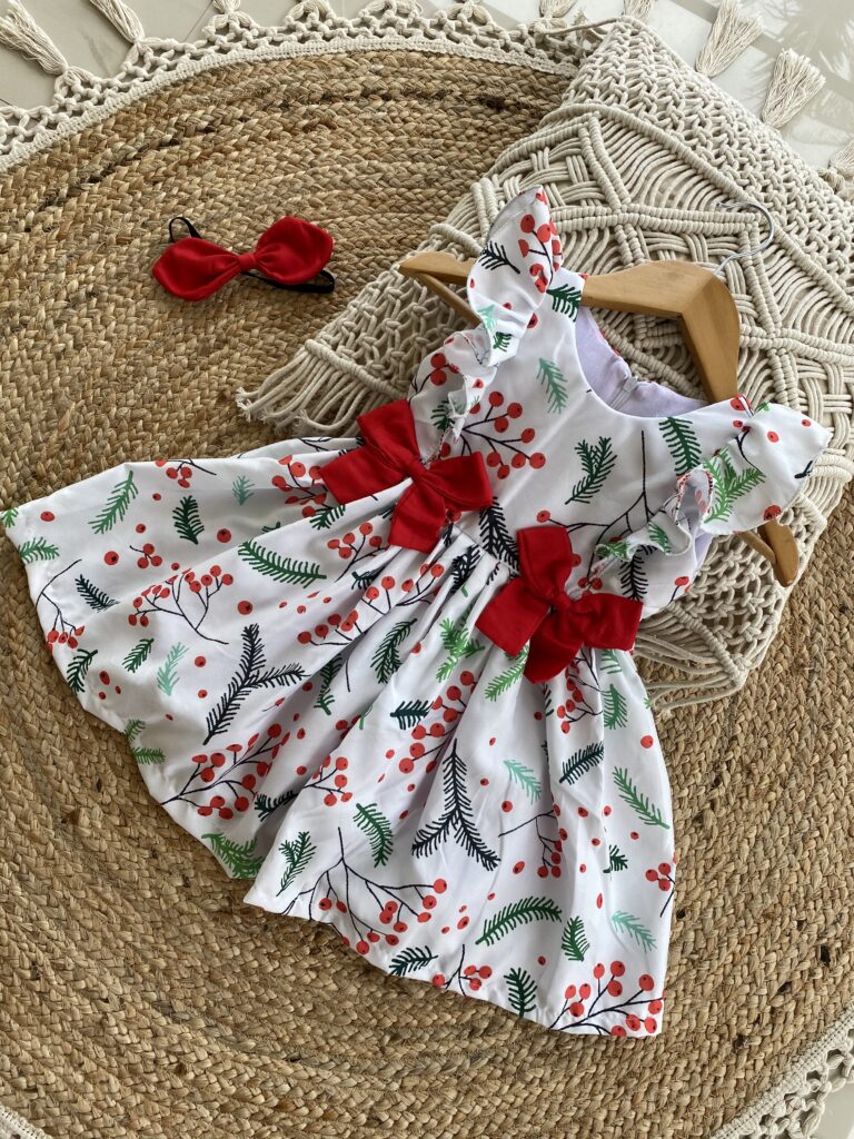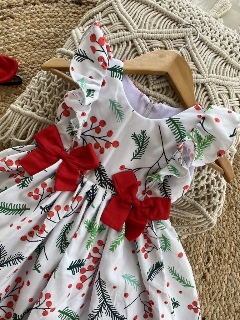 Christmas theme Cambridge white cotton frock