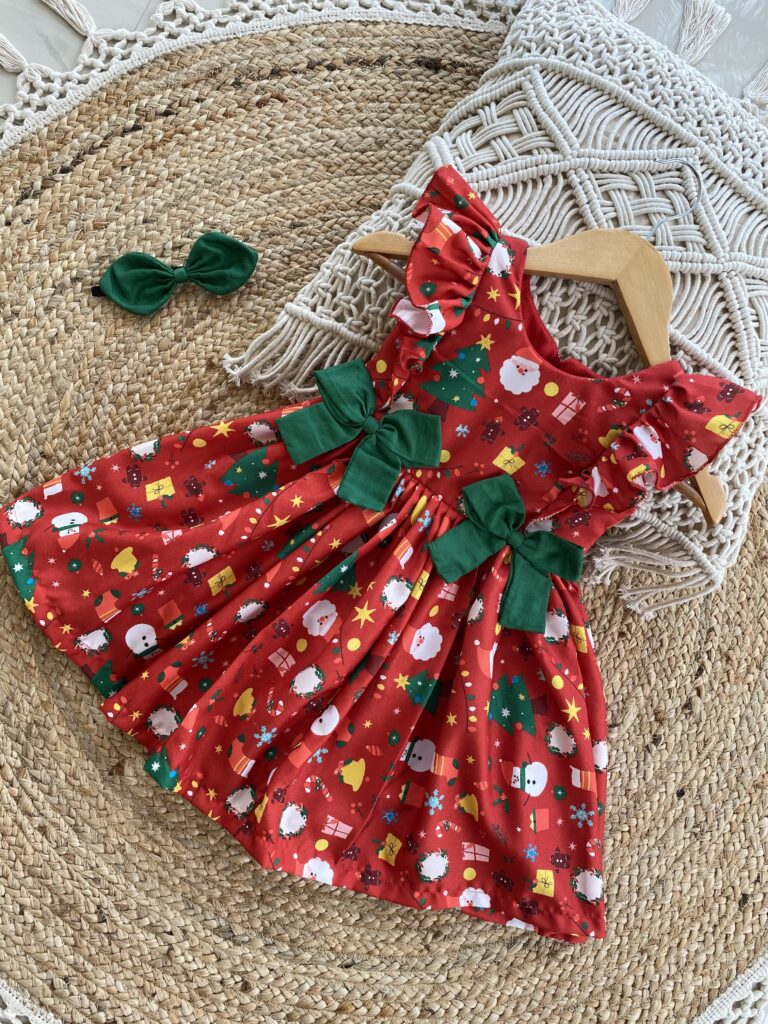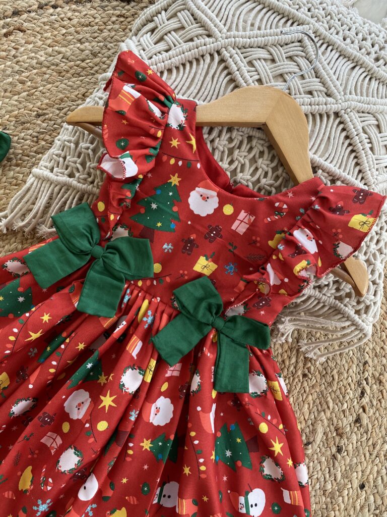 Christmas themed Cambridge red cotton frock
