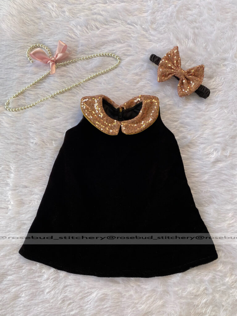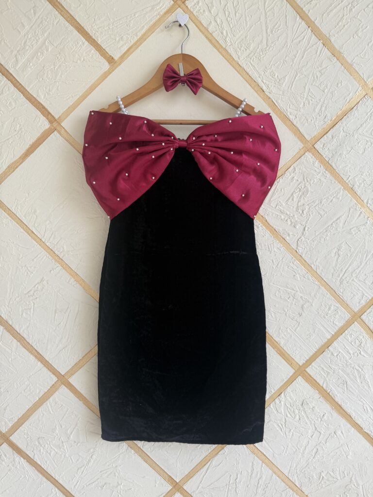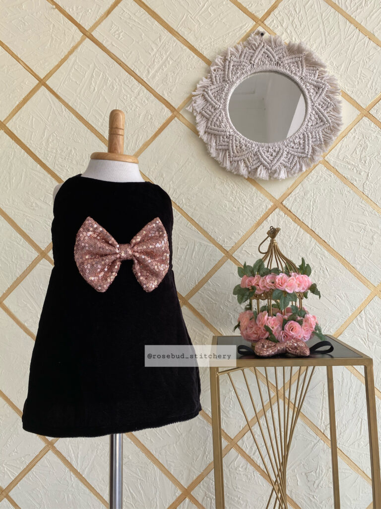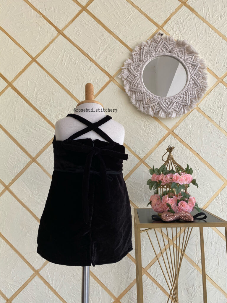 Black velvet simple frock with bow