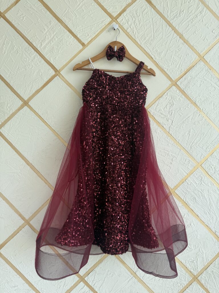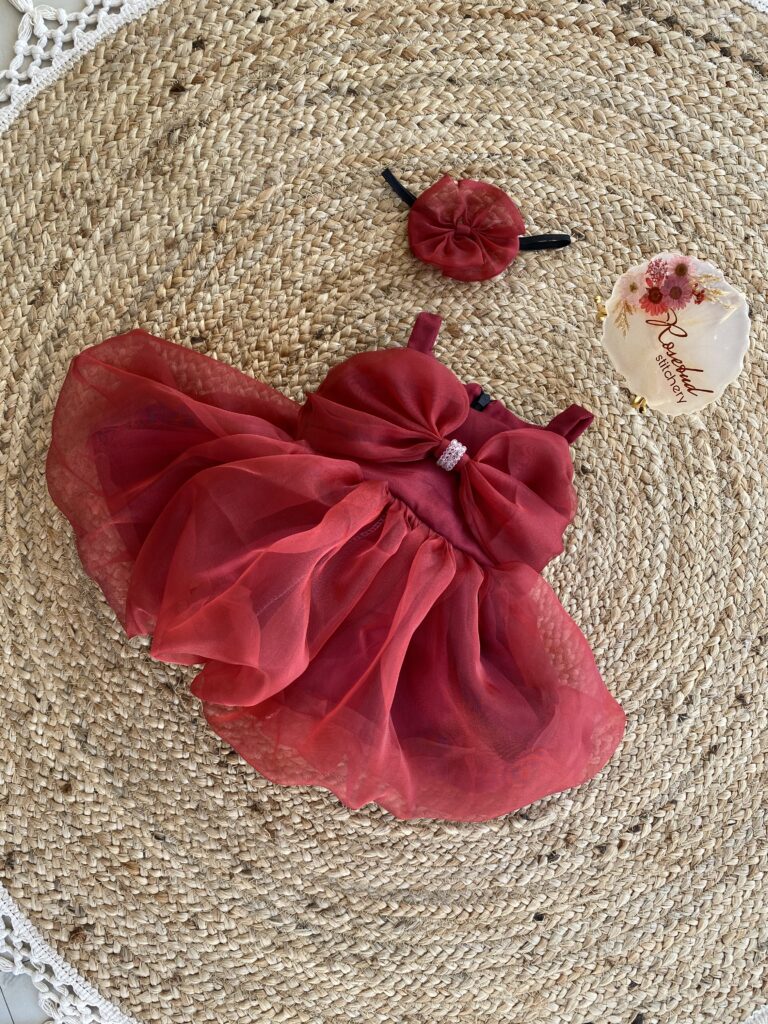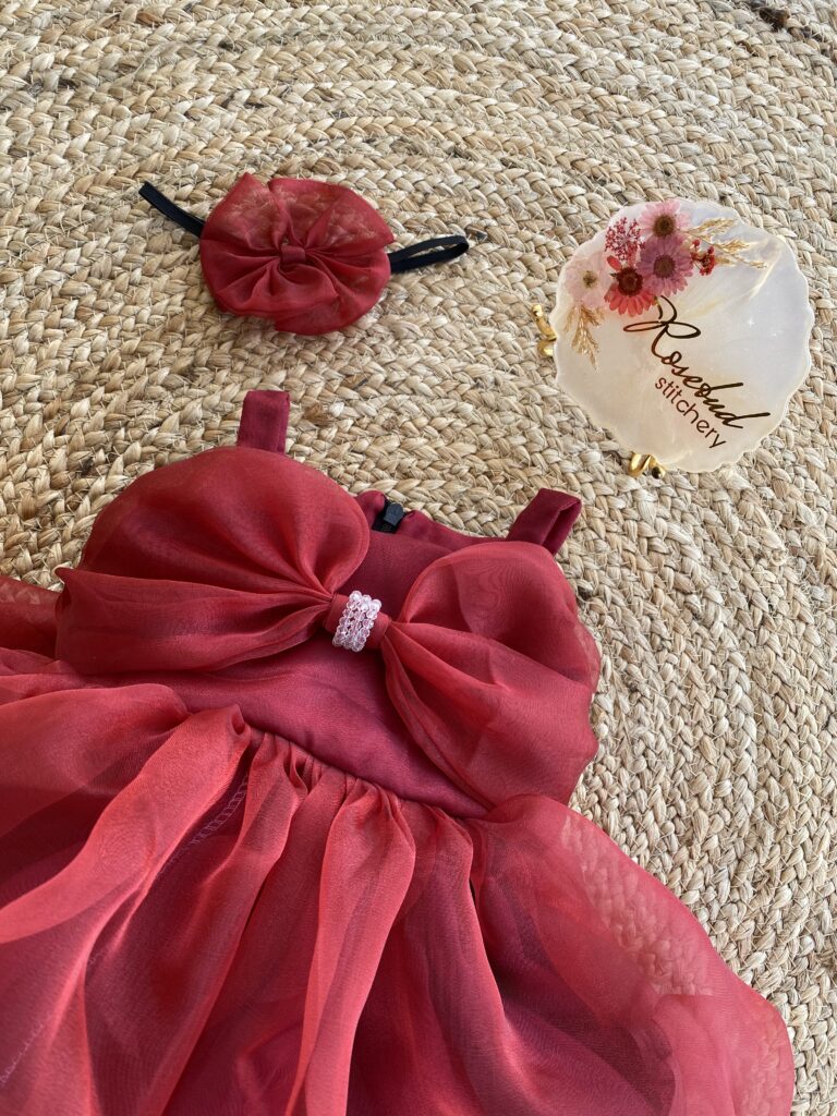 Maroon organza balloon frock