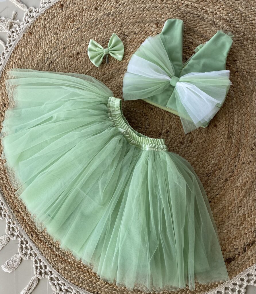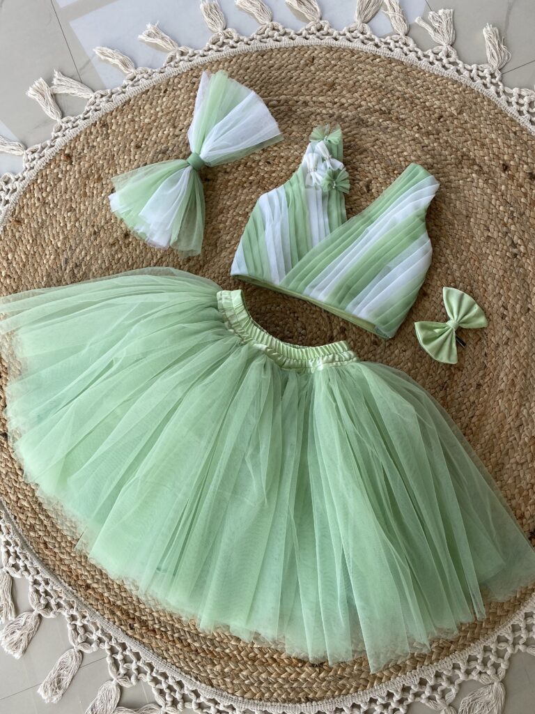 Mint green-off-white tulle skirt and top