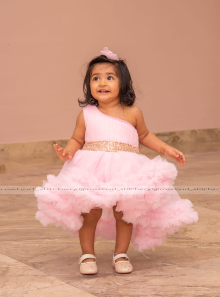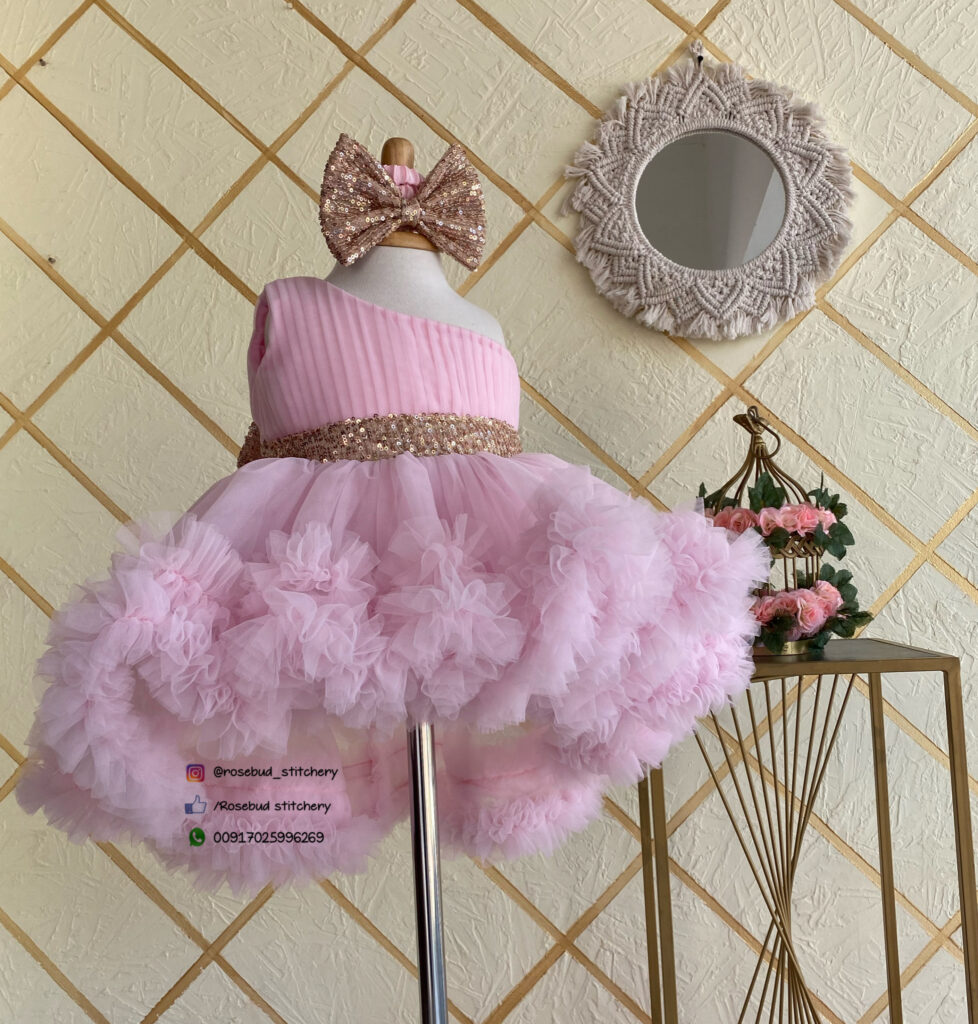 Light pink one shoulder high-low frock