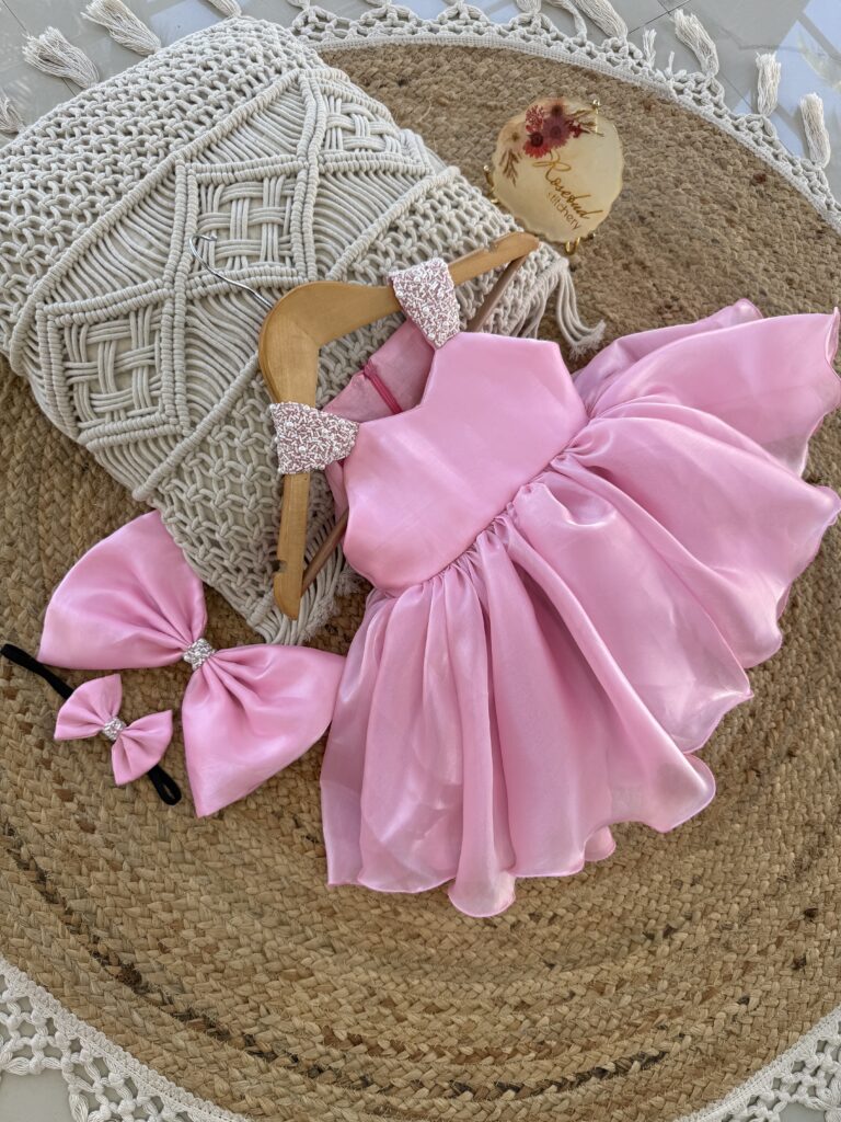 Light pink – white sparkled organza frock