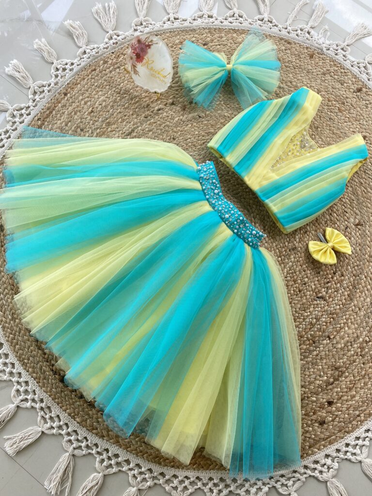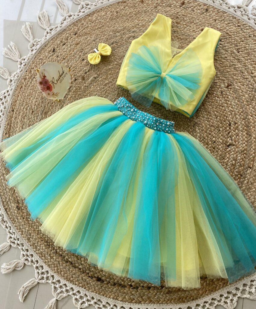 Yellow-blue party skirt and top set