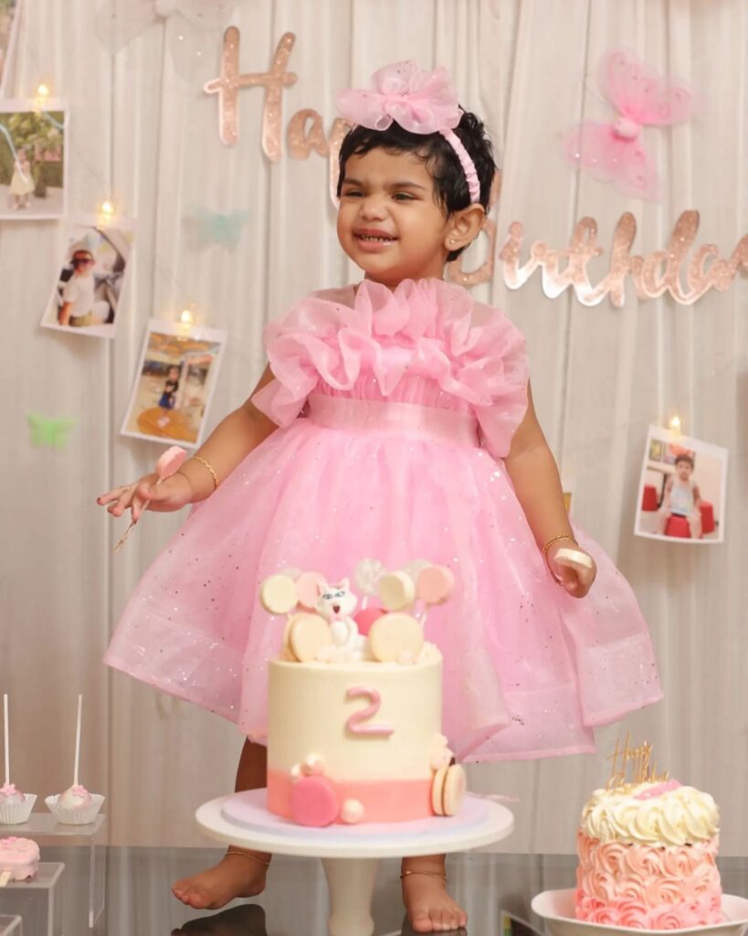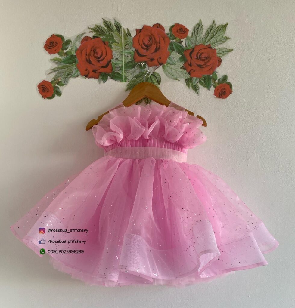 Light pink – white sparkled organza frock