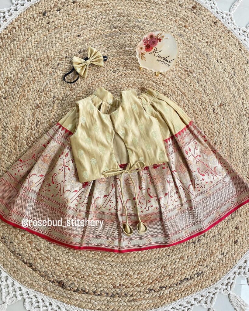 Beige color Banaras silk skirt and top